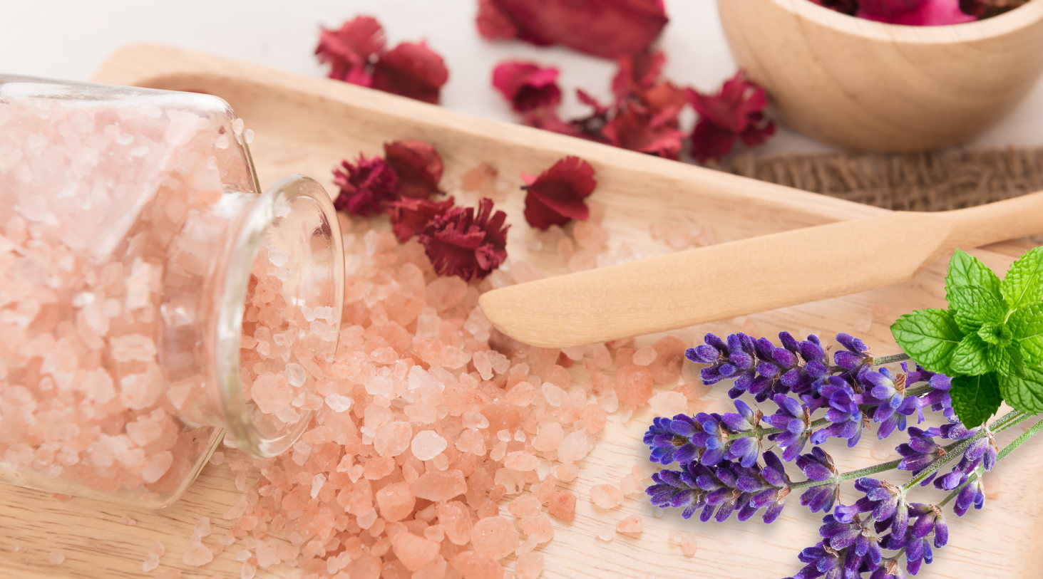 - 1/2 cup fine Himalayan salt (detoxifies and exfoliates)